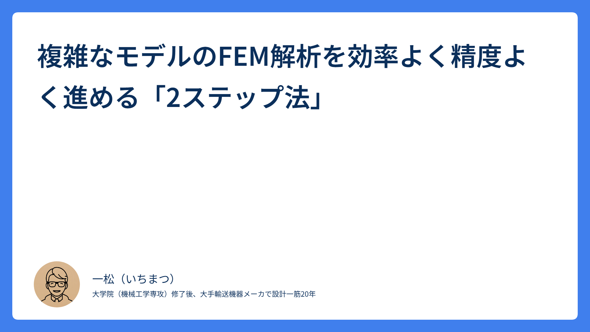 複雑なモデルのFEM解析を効率よく精度よく進める「2ステップ法」 2026.04.12 設計一般 ichimatsu How to 機械設計 CAE解析が実機と合わない原因は「境界条件」にある|現物観察から精度を上げる実践アプローチ 2026.04.02 アルミ設計 ichimatsu How to 機械設計 ひずみゲージ実測のすすめ|台上評価では見えない応力を発見する「昔ながらの方法」の価値 2026.03.29 アルミ設計 ichimatsu How to 機械設計 FEM解析だけでは疲労破壊は防げない|エンジン設計で見落としがちな「入力荷重」の落とし穴 2026.03.29 アルミ設計 ichimatsu How to 機械設計 鉄とアルミで疲労破面はこう違う|破面観察で破壊原因を読み解く方法 2026.03.29 アルミ設計 ichimatsu How to 機械設計 疲労破壊の原理原則|エンジン設計者が押さえるべき「3つの条件」と繰り返し回数の考え方 2026.03.29 アルミ設計 ichimatsu How to 機械設計 ボルトの強度区分を完全解説|8.8・10.9・12.9の違いと正しい選び方 2026.03.23 締結 ichimatsu How to 機械設計 「スプライン設計の基本|高トルク伝達で失敗しないための2歯受けの考え方」 2026.02.01 歯車 ichimatsu How to 機械設計 スプライン・歯車の熱処理と量産立ち上げの「泥臭い」現実 2026.01.28 歯車 ichimatsu How to 機械設計 予圧が全て:ボルト締結体の「ゆるみ」と「へたり」の物理学とその克服法 2025.11.03 締結 ichimatsu How to 機械設計 もっと見る